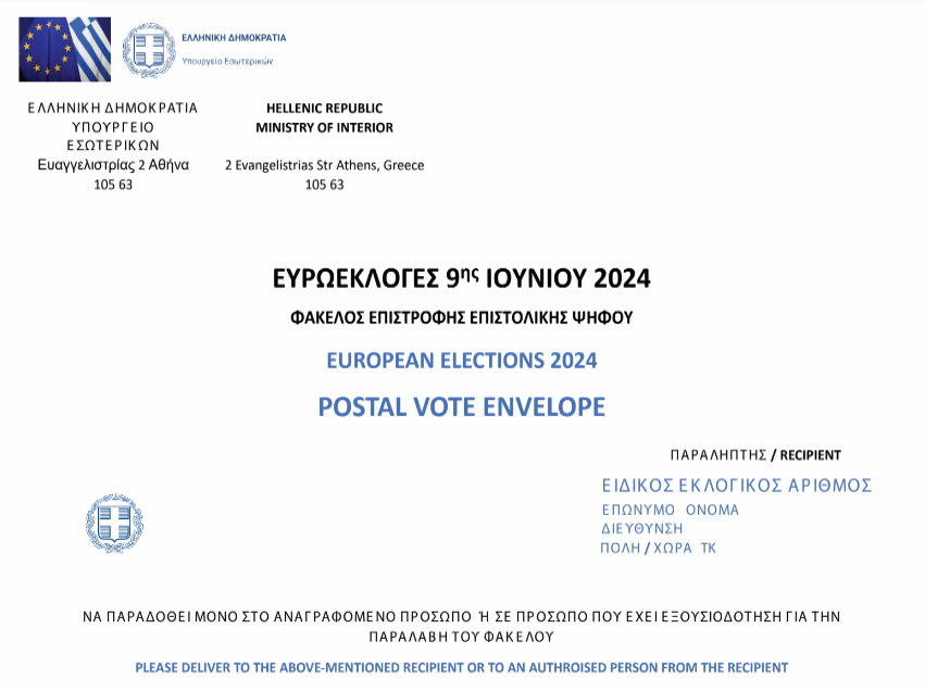 Ο εκλογέας θα παραλαμβάνει το εκλογικό υλικό στη διεύθυνση που θα δηλώσει