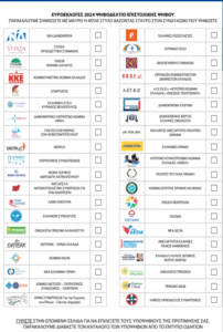 Το ψηφοδέλτιο δεν θα έχει καμία σχέση με αυτά που γνωρίζουμε. Στην μπροστινή όψη θα έχει όλα τα κόμματα που θα συμμετάσχουν στις εκλογές και η επιλογή θα γίνεται με σταυρό στο κουτάκι που βρίσκεται δίπλα από το όνομα και το έμβλημα του κόμματος.