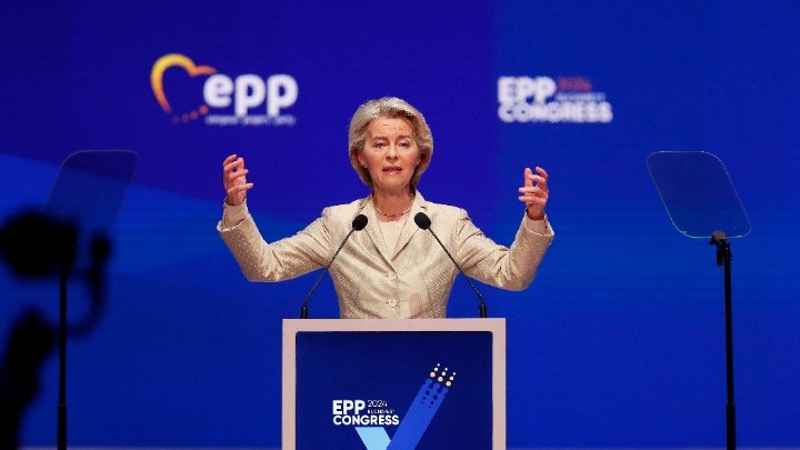 Η Ούρσουλα φον ντερ Λάιεν χρίσθηκε σήμερα επισήμως από τη συντηρητική πολιτική οικογένειά της, το Ευρωπαϊκό Λαϊκό Κόμμα (ΕΛΚ), που συνεδρίασε στο Βουκουρέστι, υποψήφια για μια δεύτερη πενταετή θητεία στην προεδρία της Ευρωπαϊκής Επιτροπής.