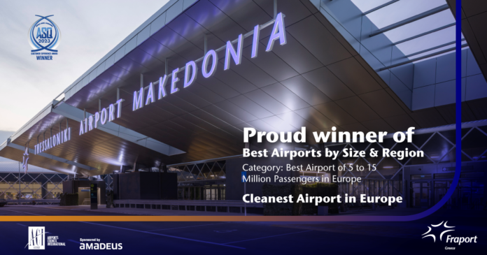Ως ένα από τα κορυφαία αεροδρόμια της Ευρώπης αναγνωρίστηκε για δεύτερη συνεχή χρονιά ο αερολιμένας «Μακεδονία» της Θεσσαλονίκης, στην κατηγορία των πέντε έως 15 εκατομμυρίων επιβατών ετησίως. Η διάκριση δόθηκε στη Fraport Greece, κατά τα «2023 Airport Service Quality (ASQ) Awards», στα οποία το αεροδρόμιο της Θεσσαλονίκης βραβεύτηκε για πρώτη χρονιά έως ένα από τα κορυφαία της Ευρώπης, όσον αφορά το επίπεδο καθαριότητάς του.