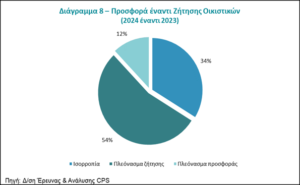 Πλεόνασμα ζήτησης στην Αττική, τη Θεσσαλονίκη και όλες τις τουριστικές περιοχές της χώρας, διαπιστώνει η Cerved Property Services, όσον αφορά στην αγορά κατοικίας, ενώ στους υπόλοιπους νομούς η σχέση προσφοράς και ζήτησης είναι κατά κανόνα ισόρροπη. Όπως σημειώνει σε σχετική της ανάλυση, οι παράγοντες που ενδυναμώνουν τη ζήτηση είναι το ενδιαφέρον των αλλοδαπών για χρυσές βίζες και εξοχικές κατοικίες, η αυξημένη ζήτηση των ευκατάστατων Ελληνικών νοικοκυριών για ιδιοκατοίκηση και ο επενδυτικός ρόλος που έχει αποκτήσει πλέον η κατοικία. Αντιθέτως οι παράγοντες που αποδυναμώνουν την αγοραστική ζήτηση από πλευράς Ελληνικών νοικοκυριών είναι ο πληθωρισμός με τη συνεπακόλουθη ραγδαία αύξηση των τιμών καθώς και η αύξηση των στεγαστικών επιτοκίων.