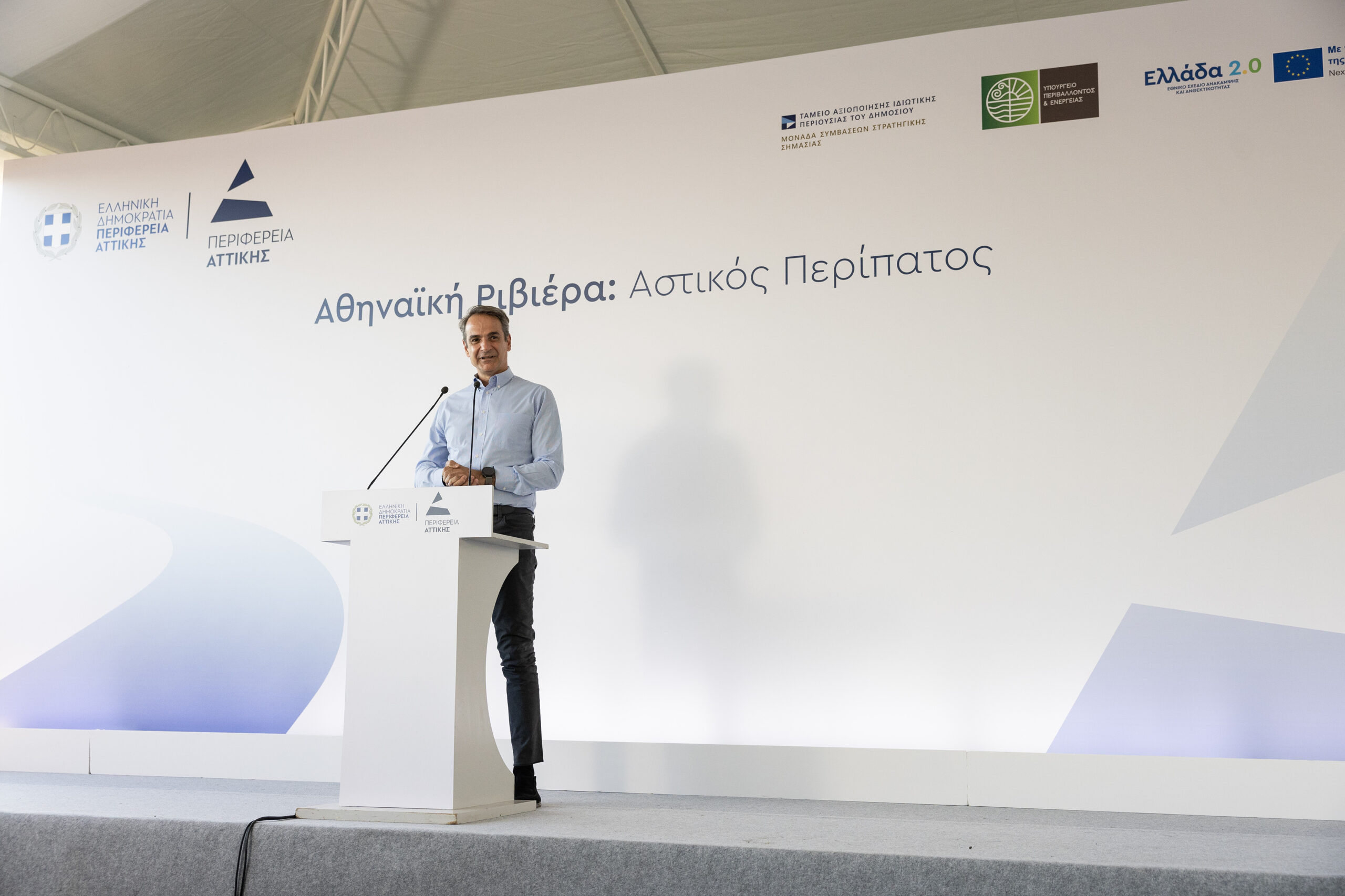 Πηγή Εικόνας: ΑΠΕ - ΜΠΕ«Το αναπτυξιακό αποτύπωμα αυτής της προσπάθειας είναι πολύ σημαντικό. Είναι, όμως, ένα αποτύπωμα το οποίο δεν θα είναι εις βάρος των τοπικών κοινωνιών και νομίζω ότι το μεγάλο μέλημα είναι πώς θα μπορέσουμε να συνδυάσουμε αυτή τη νέα ανάπτυξη η οποία δρομολογείται», ανέφερε ο πρωθυπουργός Κυριάκος Μητσοτάκης που παρέστη το απόγευμα στην εκδήλωση στον ‘Αλιμο για την υπογραφή της σύμβασης κατασκευής του έργου «Αθηναϊκή Ριβιέρα, Αστικός Περίπατος». Το έργο αποτελεί μέρος του Εθνικού Σχεδίου Ανάκαμψης και Ανθεκτικότητας και αφορά στην κατασκευή ενοποιημένου ποδηλατόδρομου και πεζόδρομου που θα ενώνει την Αθηναϊκή Ριβιέρα, από την «Εσπλανάδα» στο Μοσχάτο μέχρι το Δημαρχείο Βάρης-Βούλας-Βουλιαγμένης.