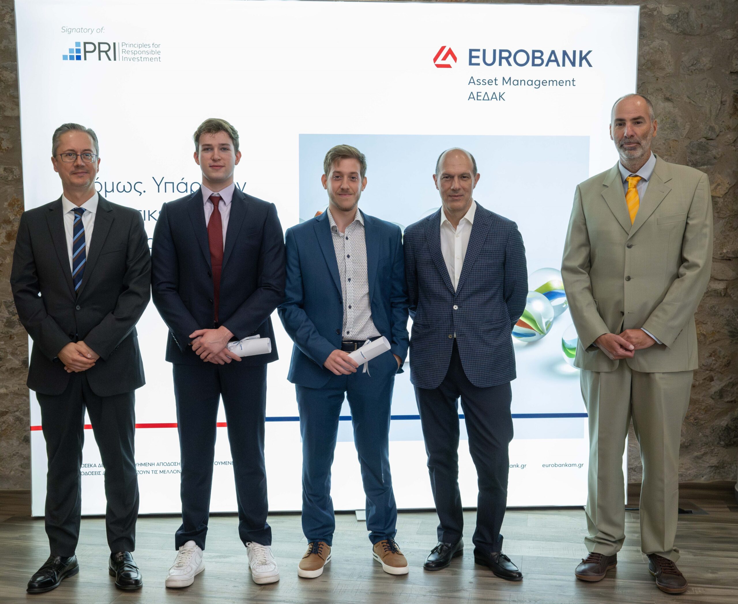 Πηγή Εικόνας: ape - mpeΤη δυνατότητα να διαχειριστούν «εικονικά» κεφάλαια εκατοντάδων χιλιάδων ευρώ και στη συνέχεια να δημιουργήσουν χαρτοφυλάκια αμοιβαίων κεφαλαίων που απευθύνονται ακόμα και σε μεσαία εισοδηματικά στρώματα, είχαν δύο φοιτητές του τμήματος Λογιστικής και Χρηματοοικονομικής του Οικονομικού Πανεπιστημίου Αθηνών (ΟΠΑ). Πρόκειται για τους Παναγιώτη Μητρόπουλο (τελειόφοιτο) και τον Διονύση Κουζελέα (πτυχιούχο) που πέτυχαν να κατακτήσουν την πρώτη θέση στο διαγωνισμό «Investor Simulator», μια πρωτοβουλία της Eurobank, που δίνει τη δυνατότητα σε φοιτητές και φοιτήτριες οικονομικών σχολών να παρακολουθήσουν σεμινάρια από τα στελέχη της θυγατρικής της ΑΕΔΑΚ, και στη συνέχεια να δημιουργήσουν και να διαχειριστούν χαρτοφυλάκια αμοιβαίων κεφαλαίων.