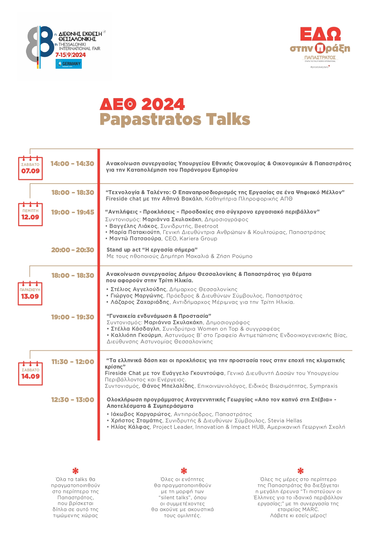 Πηγή Εικόνας: απε - μπεΔυναμικά και διπλά παρούσα και στη φετινή 88η Διεθνή Έκθεση Θεσσαλονίκης (88η ΔΕΘ), με το εμπορικό και εταιρικό της περίπτερο, είναι η εταιρεία ΠΑΠΑΣΤΡΑΤΟΣ.