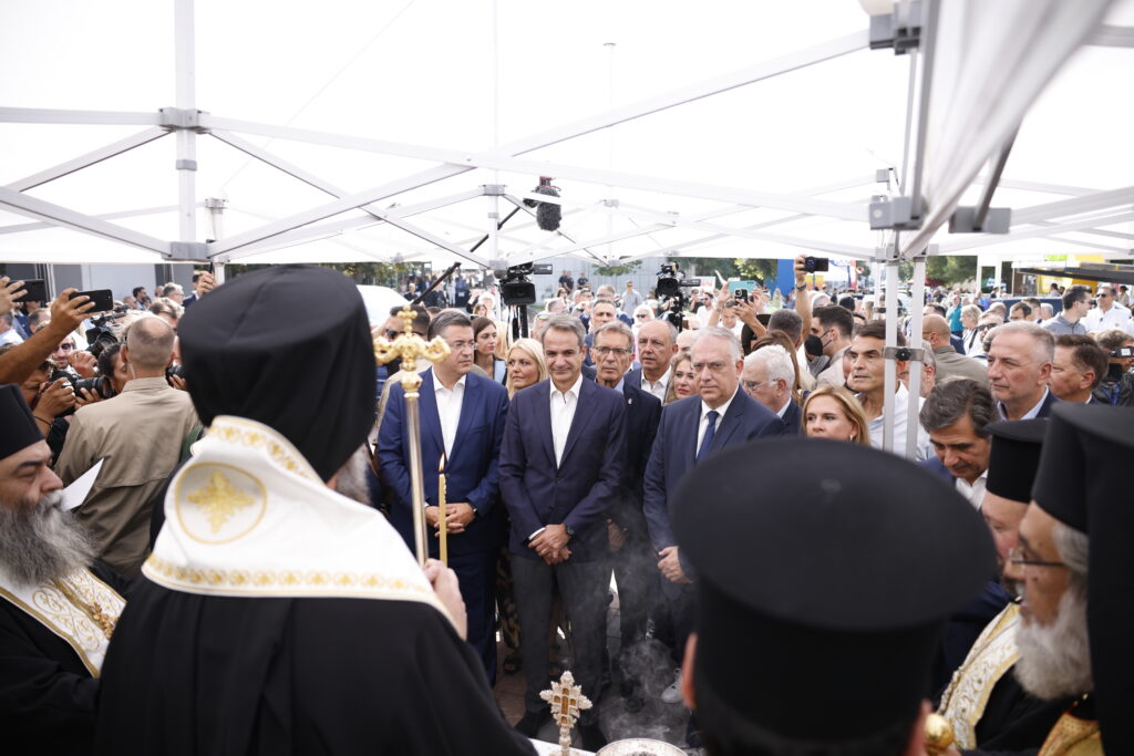 Με την παρουσία του στον αγιασμό για την έναρξη λειτουργίας της 88ης Διεθνούς Εκθεσης Θεσσαλονίκης, ξεκίνησε η επίσκεψη του. Στον αγιασμό χοροστάτησε ο μητροπολίτης Θεσσαλονίκης Φιλόθεος, ο οποίος απευθυνόμενος προς τον κ. Μητσοτάκη σημείωσε: “Σας ευχαριστούμε που μαζί με τους συνεργάτες σας εργάζεστε για το καλό του τόπου μας”.