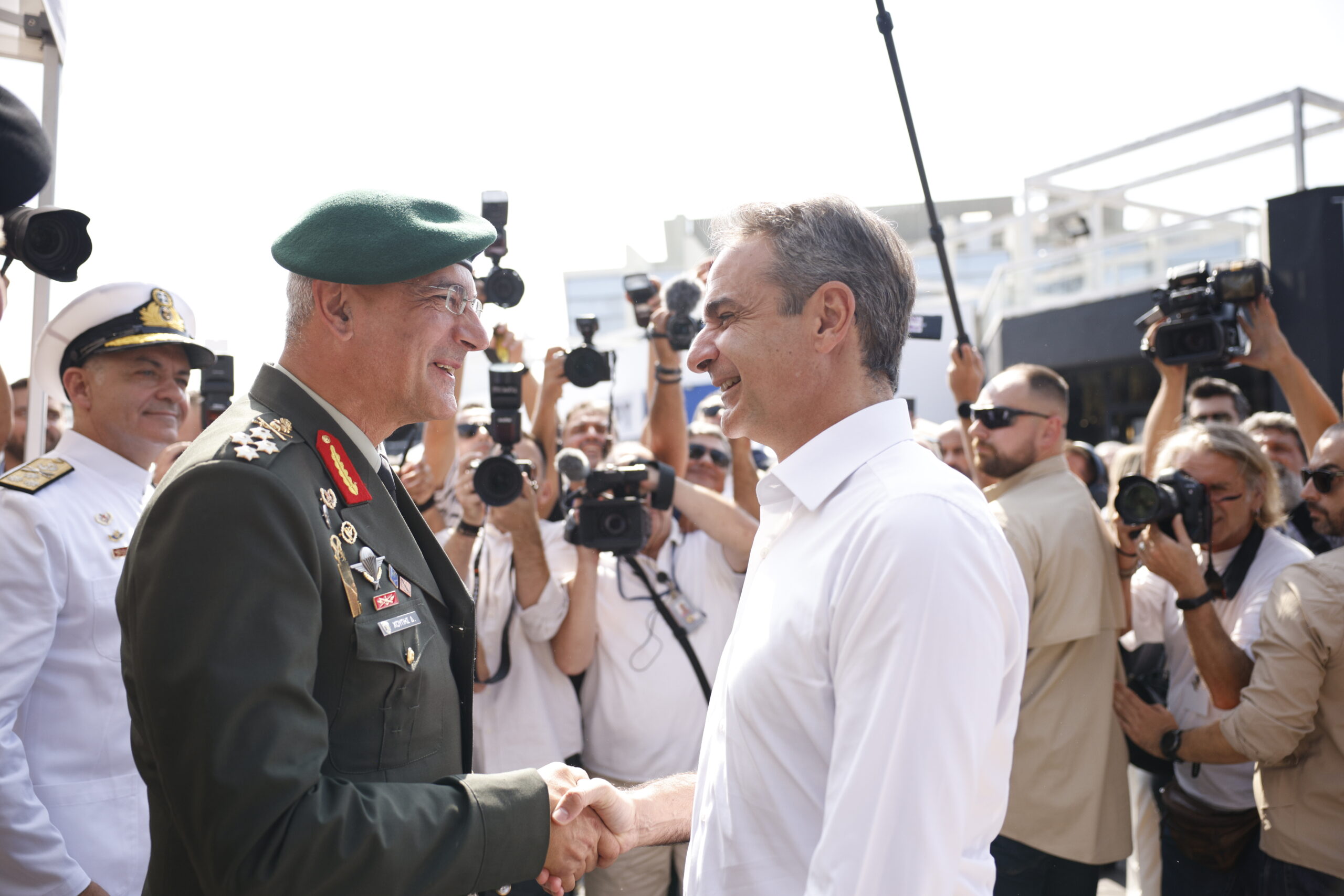 Ένα από τα πρώτα περίπτερα που στάθηκε ο πρωθυπουργός για να παρακολουθήσει επίδειξη drone ήταν αυτό του υπουργείο Εθνικής Αμύνης. Εκεί μίλησε με στελέχη των Ενόπλων Δυνάμεων, τους οποίους και ευχαρίστησε για την παρουσίαση.