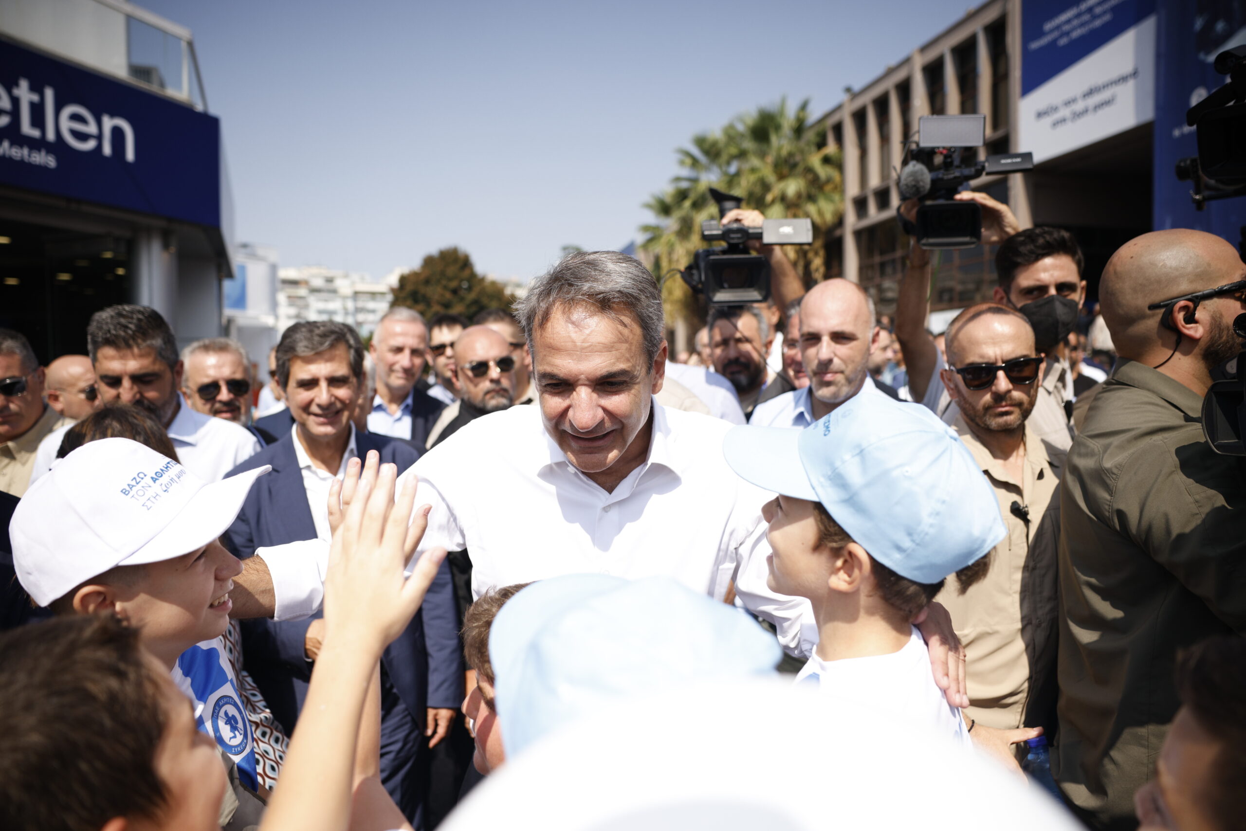 Η περιοδεία του είχε και έντονο αθλητικό περιεχόμενο καθώς ο κ. Μητσοτάκης συναντήθηκε τόσο με τον χάλκινο ολυμπιονίκη Νταουρέν Κουρουγκλίεβ τον οποίο και συνεχάρη όσο και με τα χάλκινα παιδιά της κωπηλασίας, Αντώνη Παπακωνσταντίνου και Πέτρο Γκαϊδατζή. Μάλιστα, φωτογραφίες έβγαλε και με τα παιδιά της ΠΑΕ Ακρίτες Συκεών που βρίσκονταν στο σημείο της περιοδείας του. Λίγο αργότερα, είχε την ευκαιρία να παίξει και… επιτραπέζιο ποδοσφαιράκι ενώ ρωτήθηκε από κόσμο που βρισκόταν στα πέριξ για τις αθλητικές του προτιμήσεις.