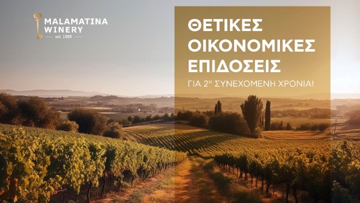 Θετικό πρόσημο έφεραν, για δεύτερη συνεχόμενη χρονιά, το 2023 τα οικονομικά μεγέθη της Οινοποιίας Μαλαματίνα, με τις πωλήσεις της εντός και εκτός ελληνικών συνόρων να «τρέχουν» με ταχύ ρυθμό και με το επενδυτικό της πλάνο να εξελίσσεται βάσει του χρονοδιαγράμματος που έχει τεθεί.