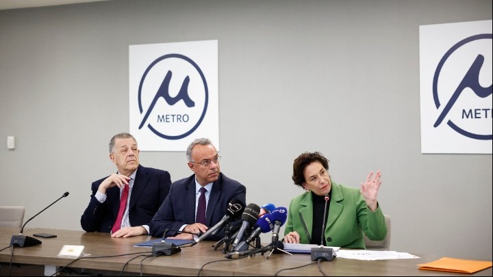 Το λογότυπο του μετρό Θεσσαλονίκης αποκαλύφθηκε σήμερα στη διάρκεια εκδήλωσης που έγινε στα γραφεία της Ελληνικό Μετρό ΑΕ, παρουσία του υπουργού Υποδομών και Μεταφορών, Χρήστου Σταϊκούρα και του αρμόδιου υφυπουργού, Νίκου Ταχιάου, του διευθύνοντος συμβούλου της Ελληνικό Μετρό, Νίκου Κουρέτα και του διευθύνοντος συμβούλου της THEMA, Κάρλο Μπιάνκο, που έχει αναλάβει τη λειτουργία και τη συντήρηση του έργου.
