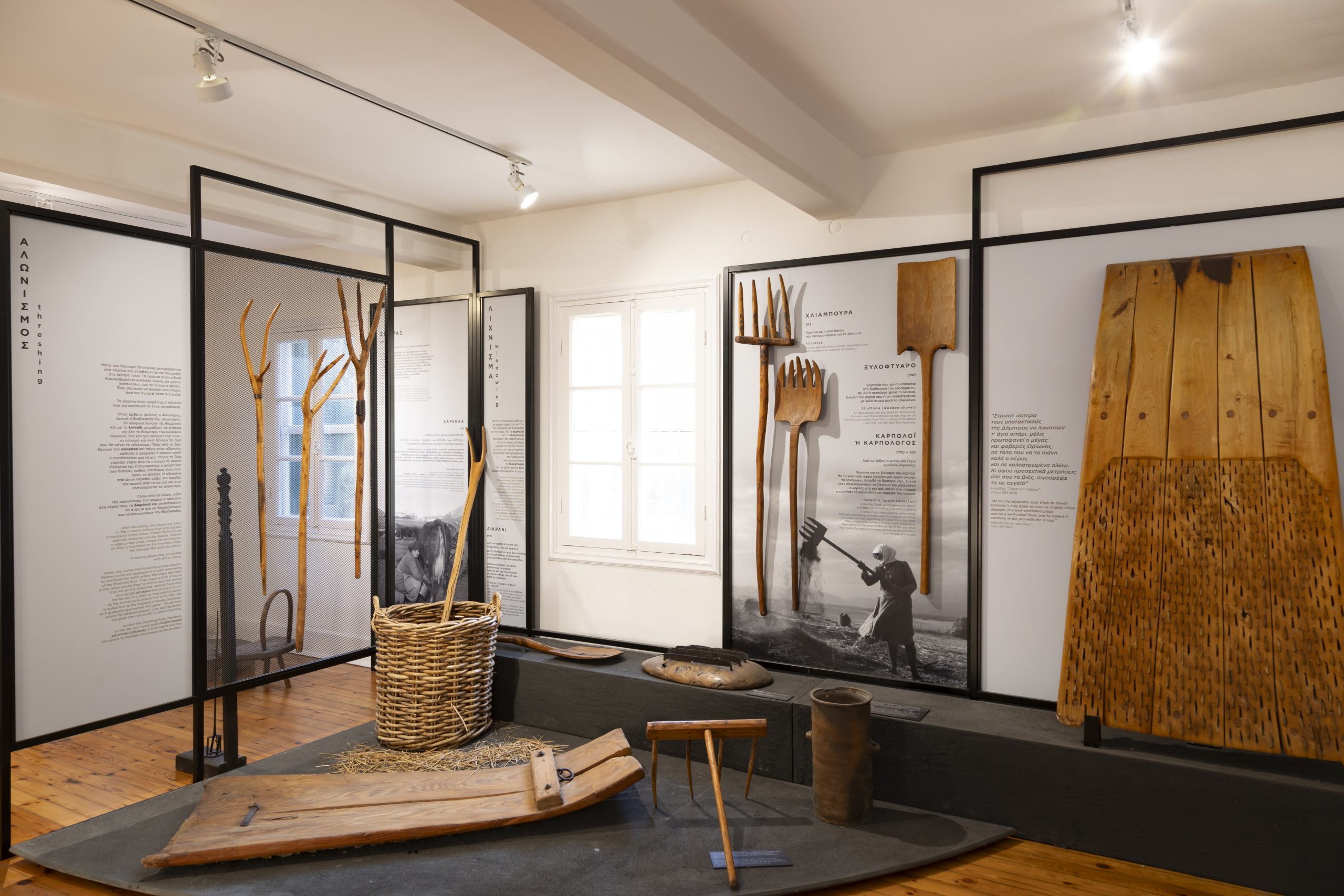 «Η προσπάθεια ξεκίνησε πριν από δυόμισι χρόνια με τη δωρεά της κ. Κοντέλλη και τους συναδέλφους μου στη σχολή. Εκτός από τη δωρεά, η κ. Κοντέλλη ανακαίνισε με δική της δαπάνη το σπίτι ενώ με συντονισμένη προσπάθεια, πολλή αγάπη και υπομονή, με συνεργάτες το γραφείο αρχιτεκτόνων μουσειολόγων Θωμά Τσουκαλά, οργανώσαμε την έκθεση. Στο ισόγειο του σπιτιού έχουμε τα εργαλεία καλλιέργειας εδάφους για διάφορες καλλιέργειες, αλλά αυτή που κυριαρχεί είναι η καλλιέργεια του σιταριού καθώς αυτό ήταν το βασικό τρόφιμο. Στον όροφο έχουμε αντικείμενα παραδοσιακών επαγγελμάτων, που έχουν χαθεί στο πέρασμα του χρόνου όπως ο βαρελοποιός και ο ξυλουργός και αντικείμενα που σχετίζονται με την καλλιέργεια και τη μεταποίηση του καπνού, την ελαιοκομία, τη μελισσοκομία, την αμπελουργία, την καλλιέργεια του βαμβακιού και του λιναριού, και την υφαντική» συμπληρώνει.