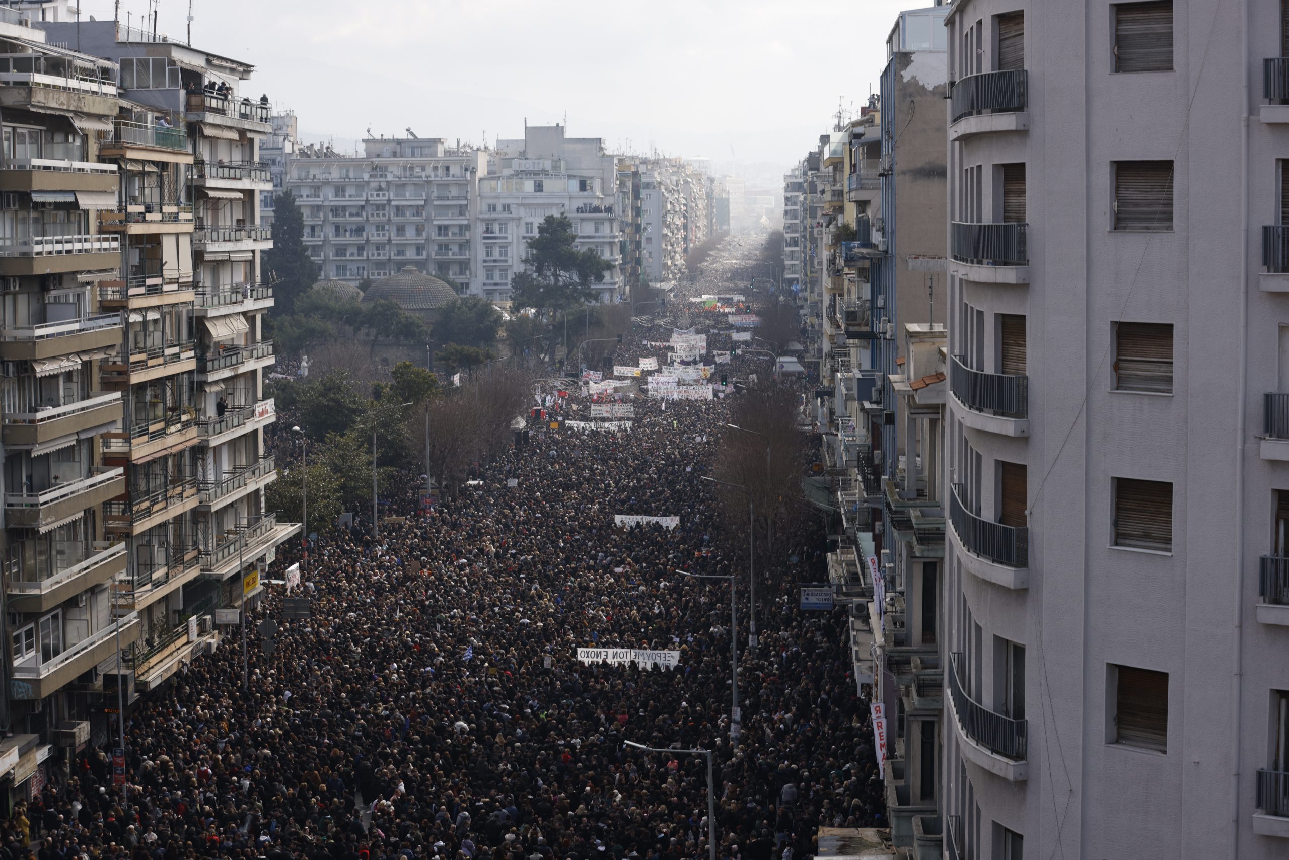 Μία από τις μεγαλύτερες συγκεντρώσεις της σύγχρονης ιστορίας της έζησε σήμερα η πόλη της Μυτιλήνης. Από νωρίς το πρωί πολλές χιλιάδες πολίτες συνέρευσαν στην πλατεία Σαπφούς και στην Προκυμαία, ζητώντας δικαίωση για τους 57 νεκρούς της τραγωδίας των Τεμπών.