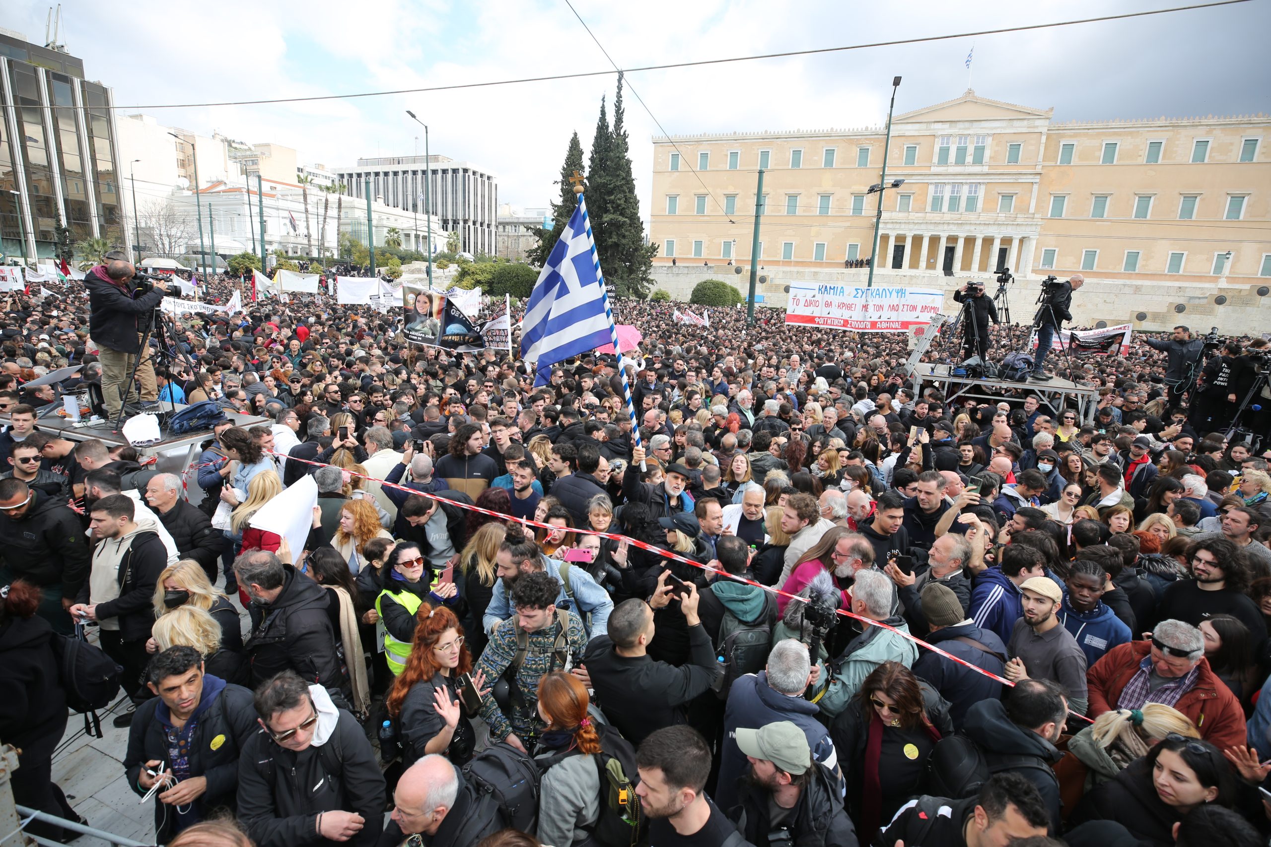 Με την ομιλία της Μαρίας Καρυστιανού ολοκληρώθηκε το μεγάλο συλλαλητήριο της Αθήνας, που πραγματοποιήθηκε στη μνήμη των 57 θυμάτων του σιδηροδρομικού δυστυχήματος των Τεμπών.