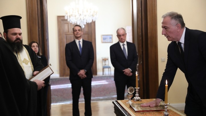 Ενώπιον του Προέδρου της Δημοκρατίας Κωνσταντίνου Τασούλα, και παρουσία του πρωθυπουργού Κυριάκου Μητσοτάκη, ορκίσθηκε νωρίτερα από τον αρχιγραμματέα της Ιεράς Συνόδου, αρχιμανδρίτη Ιωάννη Καραμούζη, ο Σταύρος Καλαφάτης, ως υφυπουργός Ανάπτυξης.