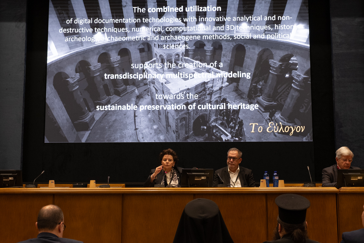 Από την πλευρά του, ο Αντιπρύτανης Έρευνας, Καινοτομίας και Εξωστρέφειας του Εθνικού Μετσόβιου Πολυτεχνείου, Καθηγητής Εμμανουήλ Βαρβαρίγος, εκ μέρους του Πρύτανη του Εθνικού Μετσόβιου Πολυτεχνείου, Καθηγητή Ιωάννη Κ. Χατζηγεωργίου, υπογράμμισε ότι την ολιστική προσέγγιση και την καινοτομία του σχεδίου αποκατάστασης του Ιερού Κουβουκλίου του Παναγίου Τάφου.