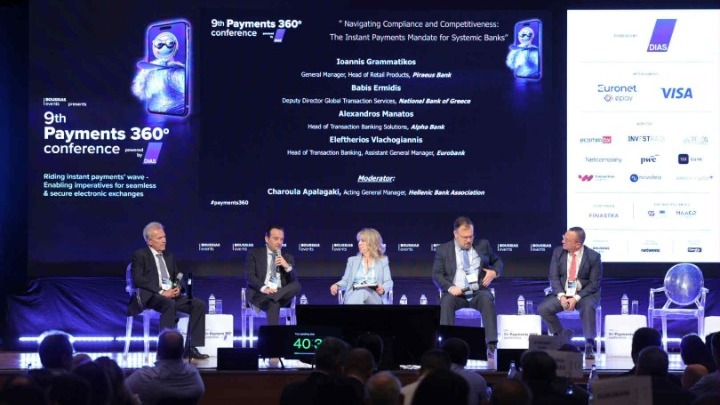 Στο πάνελ με θέμα: «Navigating Compliance and Competitiveness: The Instant Payments Mandate for Systemic Banks», οι κ.κ. Ελευθέριος Βλαχογιάννης, Βοηθός Γενικός Διευθυντής και Επικεφαλής Τομέα Transaction Banking της Eurobank, Ιωάννης Γραμματικός, Γενικός Διευθυντής Προϊόντων Λιανικής Τραπεζικής της Τράπεζας Πειραιώς, Μπάμπης Ερμείδης, Deputy Director Global Transaction Services της Εθνικής Τράπεζας και Αλέξανδρος Μανάτος Head of Transaction Banking Solutions της Alpha Bank, το οποίο συντόνισε η Acting Γενική Διευθύντρια της Ελληνικής Ένωσης Τραπεζών κα Χαρούλα Απαλαγάκη, αναλύθηκαν οι αλλαγές και οι τάσεις στο νέο περιβάλλον των άμεσων πληρωμών.