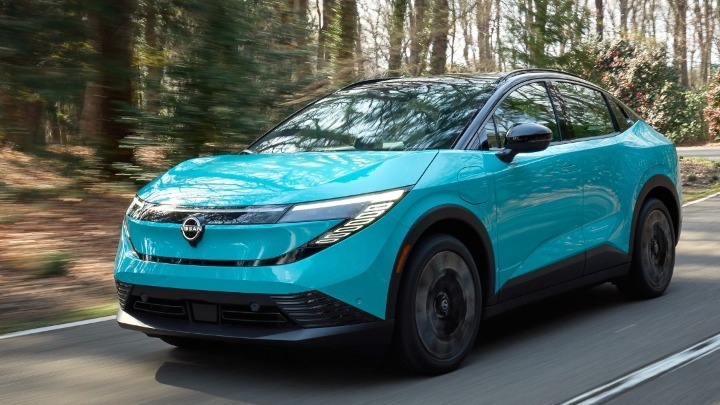 Σχεδιασμένο στο Global Design Studio της Nissan στο Atsugi της Ιαπωνίας, ξεχωρίζει με την εμφάνισή του. Με συντελεστή οπισθέλκουσας μόλις 0,25, ο σχεδιασμός του βελτιστοποιεί τη ροή του αέρα, με αποτέλεσμα την βελτίωση τόσο της απόδοσης όσο και της αυτονομίας. Οι επίπεδες λαβές των θυρών, η ρέουσα γραμμή οροφής, το πλήρες κάλυμμα κάτω από το δάπεδο και οι σμιλεμένες επιφάνειες δημιουργούν ένα μοντέρνο προφίλ, ενώ ο χαρακτηριστικός μπροστινός και πίσω φωτισμός προσφέρει μια ξεχωριστή, υψηλής τεχνολογίας ταυτότητα στο δρόμο.