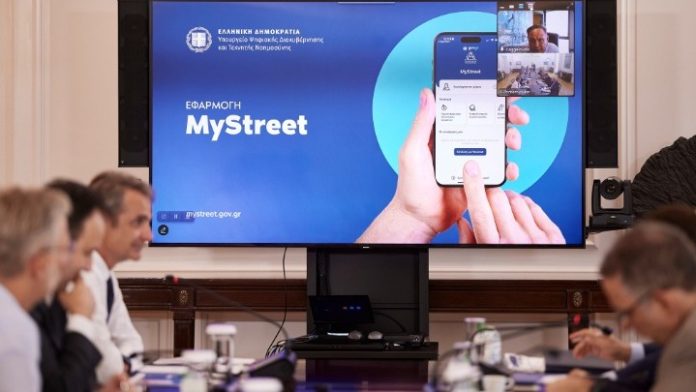 Παρουσιάστηκε σήμερα σε σύσκεψη υπό τον πρωθυπουργό Κυριάκο Μητσοτάκη, στο Μέγαρο Μαξίμου, η εφαρμογή MyStreet, η οποία είναι ένα σύγχρονο ψηφιακό εργαλείο που δίνει τη δυνατότητα στους πολίτες να συμβάλλουν στη διαφύλαξη της νομιμότητας και της διαφάνειας στους δημόσιους χώρους.
