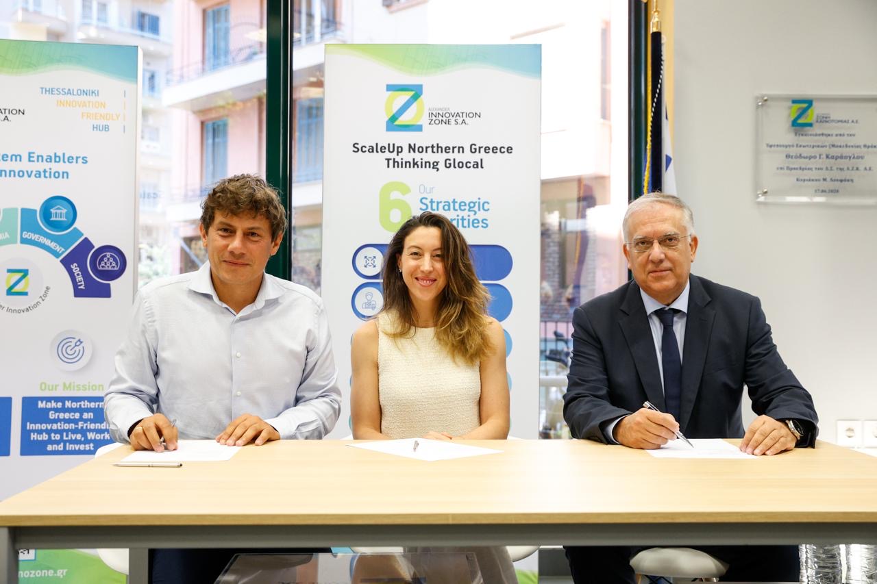 Πηγή Εικόνας: απε - μπεΜνημόνιο συνεργασίας με την OpenAI, τον τεχνολογικό κολοσσό της Τεχνητής Νοημοσύνης, υπεγράφη σήμερα στην Αλεξάνδρεια Ζώνη Καινοτομίας στη Θεσσαλονίκη από τον υπουργό Ανάπτυξης Τάκη Θεοδωρικάκο, την επικεφαλής των νεοφυών επιχειρήσεων της εταιρείας για την Ευρώπη, Laura Modiano, και τον διευθύνοντα σύμβουλο της Endeavor Greece, Παναγιώτη Καραμπίνη.