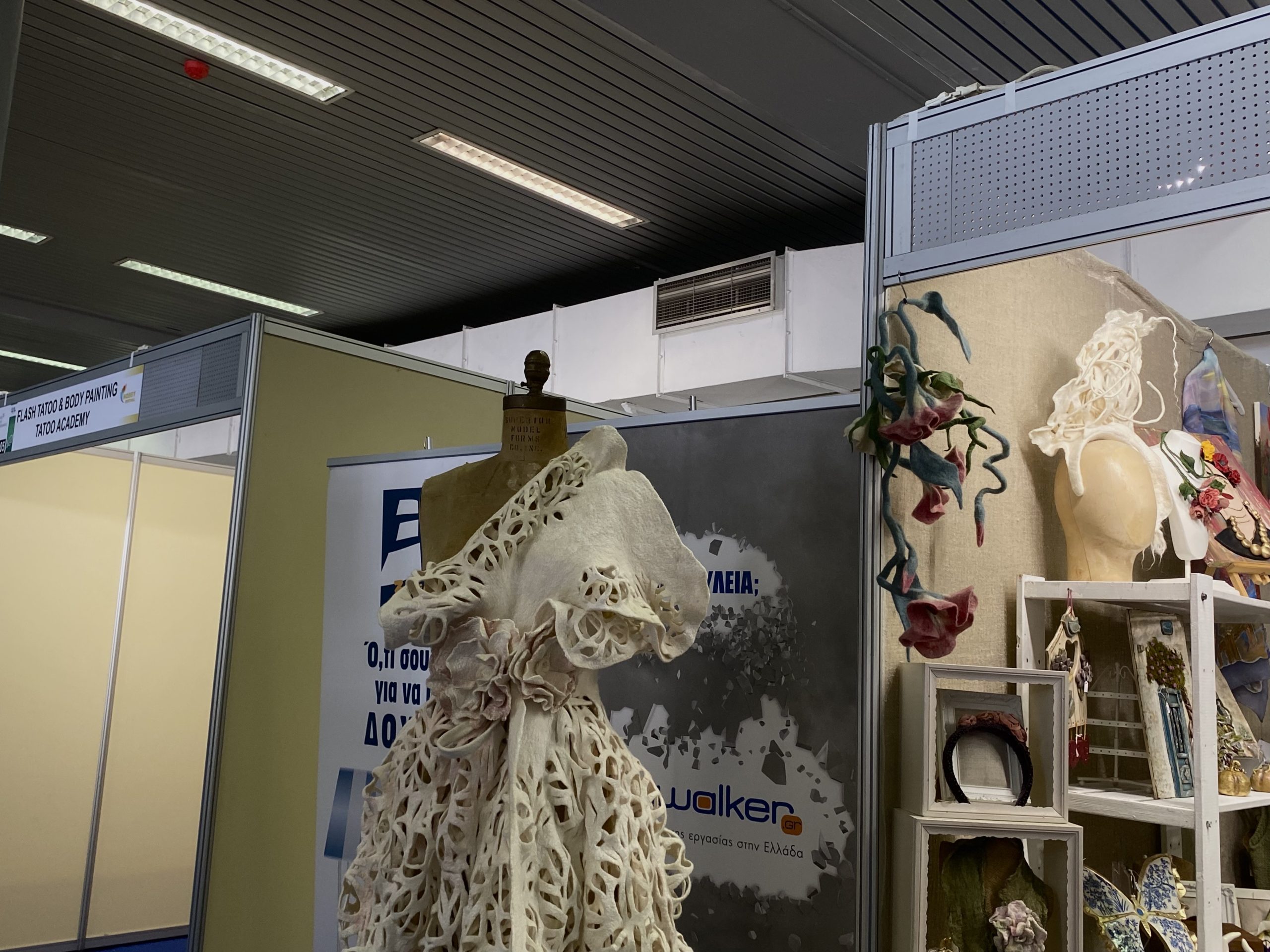 Ανάλογη είναι και η εμπειρία της Ιουλίας Πολισούκ, ιδρύτριας του καλλιτεχνικού εργαστηρίου Workshop Stories, που φέρνει στη ΔΕΘ δημιουργίες μέσα από τα εργαστήρια που διοργανώνει και συνεργατριών της. «Οργανώνουμε διάφορα σεμινάρια και workshops για να μάθουμε τέχνες. Συνεργάζομαι με πολλές καλλιτέχνιδες που ξέρουν κάποια συγκεκριμένη τέχνη, οπότε θέλουμε να δείξουμε και τι ξέρουν να κάνουν και τι μπορούμε να μάθουμε στο εργαστήριο», αναφέρει.