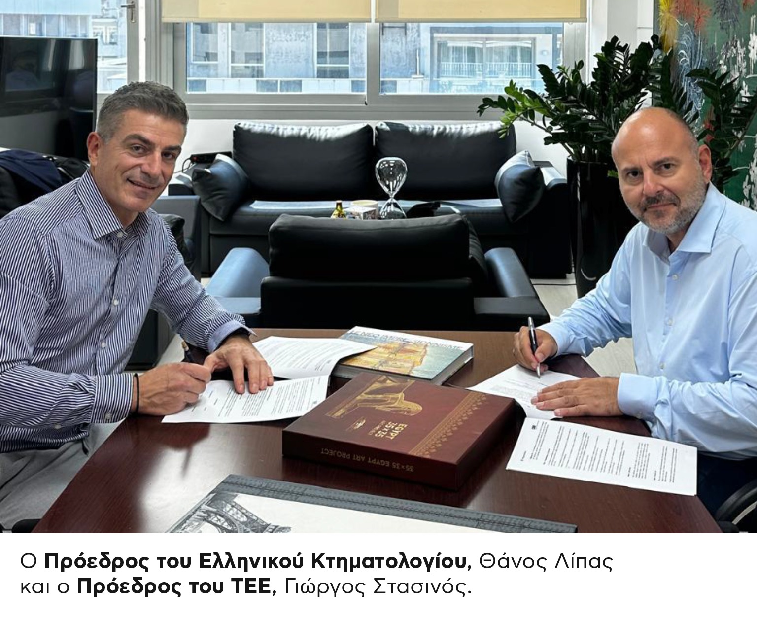Το Ελληνικό Κτηματολόγιο αναλαμβάνει την παροχή στο ΤΕΕ όλων των διαδικασιών/απαιτήσεων για την υποβολή των αιτήσεων συμμετοχής, την παροχή εκπαιδευτικού υλικού και τον καθορισμό των διαδικαστικών όρων των εξετάσεων, για τη λειτουργία του Μητρώου Πιστοποιημένων Μηχανικών Κτηματολογίου, στο πλαίσιο Προγραμματικής Σύμβασης, που υπέγραψαν ο πρόεδρος του Ελληνικού Κτηματολογίου κ. Θάνος Λίπας και ο πρόεδρος του ΤΕΕ κ. Γιώργος Στασινός. Πιο συγκεκριμένα, η Προγραμματική Σύμβαση, συνολικής διάρκειας 18 μηνών, αφορά τη συνεργασία για την οργάνωση του πλαισίου της διαδικασίας πιστοποίησης των Μηχανικών, με σκοπό την εγγραφή τους στο Μητρώο Πιστοποιημένων Μηχανικών. Η συνεργασία αυτή αποτελεί ένα σημαντικό βήμα για την ενίσχυση της αποτελεσματικότητας των διαδικασιών του Κτηματολογίου, με τη συμβολή του επιστημονικού δυναμικού του ΤΕΕ, προς όφελος των πολιτών και της Δημόσιας Διοίκησης.