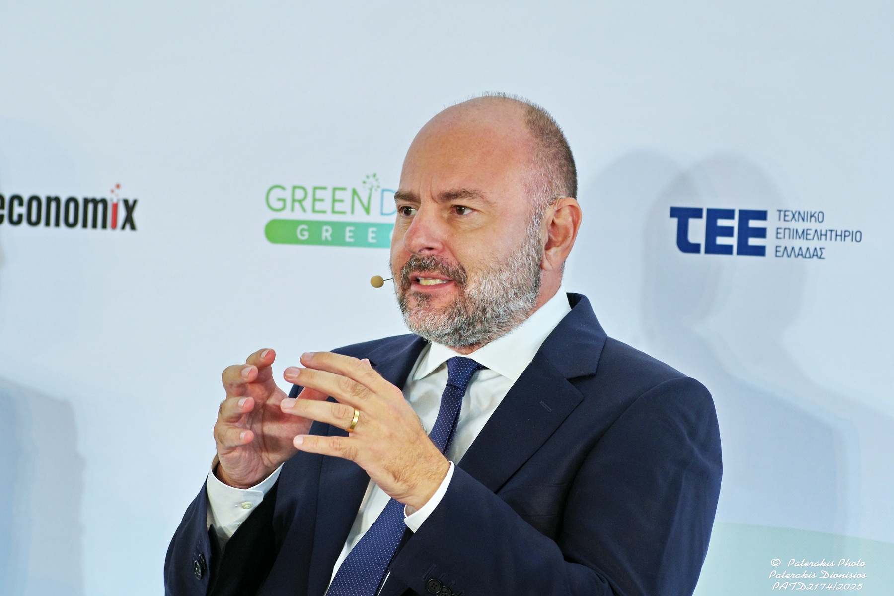 Πηγή Εικόνας: ΤΕΕ«Αυξανόμενα φιλικότερη προς τις επενδύσεις» είναι η Ελλάδα σύμφωνα με τον Υπουργό Εθνικής Οικονομίας και Οικονομικών Κυριάκο Πιερρακάκη, που συμμετείχε στη σχετική συζήτηση με τον Πρόεδρο του ΣΕΒ Σπύρο Θεοδωρόπουλο και τον Πρόεδρο του ΤΕΕ Γιώργο Στασινό στο συνέδριο «Green Deal Greece 2025», που διοργάνωσε την Τετάρτη 5 Νοεμβρίου, το Τεχνικό Επιμελητήριο Ελλάδας, σε συνεργασία με το economix.gr, για 5η συνεχόμενη χρονιά, στο Κέντρο Πολιτισμού Ίδρυμα Σταύρος Νιάρχος, με θέμα: «Πράσινος και ψηφιακός μετασχηματισμός, υποδομές και βιώσιμη ανάπτυξη σε κρίσιμη καμπή: προκλήσεις και ευκαιρίες για επενδύσεις και ανθεκτικότητα».