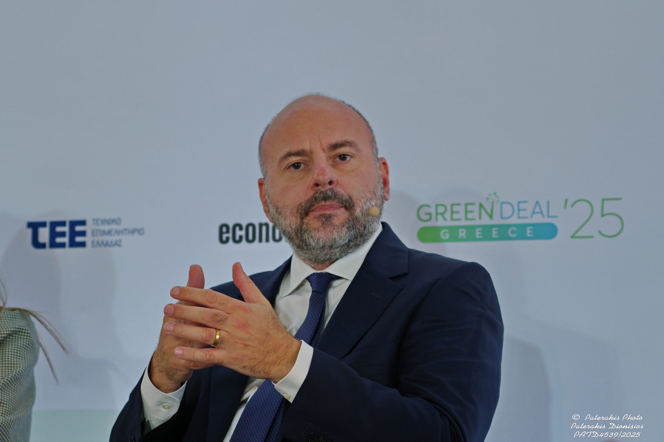 Πηγή Εικόνας: ΤΕΕΣτη μεγάλη εθνική προσπάθεια που βρίσκεται σε εξέλιξη τα τελευταία χρόνια με στόχο την οργάνωση του χώρου και στα εργαλεία που αναπτύσσει το Υπουργείο Περιβάλλοντος και Ενέργειας αναφέρθηκε ο Υφυπουργός Περιβάλλοντος και Ενέργειας, Νίκος Ταγαράς, από το βήμα του συνεδρίου «Green Deal Greece 2025», που διοργάνωσε την Τετάρτη 5 Νοεμβρίου, το Τεχνικό Επιμελητήριο Ελλάδας, σε συνεργασία με το economix.gr, για 5η συνεχόμενη χρονιά, στο Κέντρο Πολιτισμού Ίδρυμα Σταύρος Νιάρχος, με θέμα: «Πράσινος και ψηφιακός μετασχηματισμός, υποδομές και βιώσιμη ανάπτυξη σε κρίσιμη καμπή: προκλήσεις και ευκαιρίες για επενδύσεις και ανθεκτικότητα».
