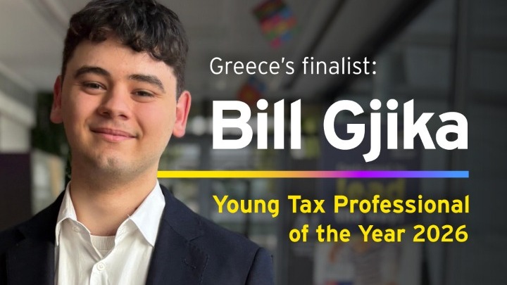 Το όνομα του νικητή του ελληνικού σκέλους του διαγωνισμού EY Young Tax Professional of the Year 2026, ανακοίνωσε η EY. Πρόκειται για τον Bill Gjika, προπτυχιακό φοιτητή του τμήματος Διοίκησης Επιχειρήσεων του Πανεπιστημίου Πειραιώς, ο οποίος θα εκπροσωπήσει την Ελλάδα στο παγκόσμιο σκέλος του διαγωνισμού, τον Ιανουάριο του 2026.