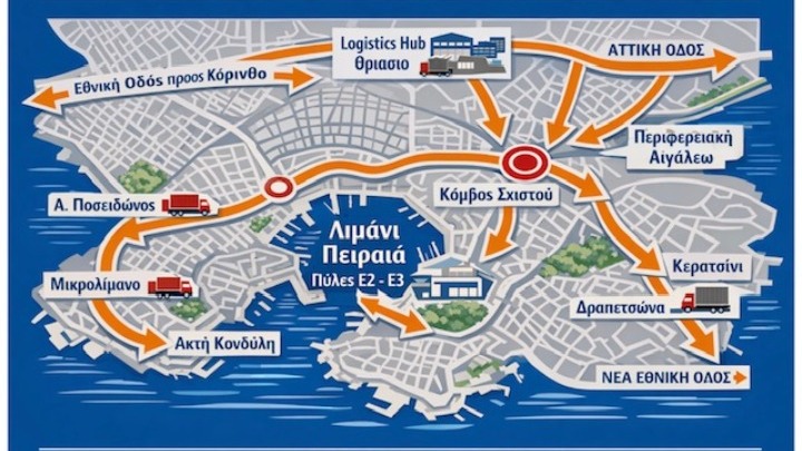 Συνολικά, η μέση ημερήσια διακίνηση φορτηγών που σχετίζονται με το εμπορικό και επιβατηγό λιμάνι του Πειραιά ανέρχεται σε περίπου 5.000 φορτηγά την ημέρα, με σημαντικά υψηλότερες τιμές κατά τις ώρες αιχμής και με 1.500-2.000 φορτηγά Δ.Χ. να χρησιμοποιούν τον Κηφισό. Η κλίμακα αυτή εξηγεί την έντονη επιβάρυνση του οδικού δικτύου, των λιμενικών πυλών και των logistics κόμβων της ευρύτερης περιοχής. Η βασική επιβάρυνση του οδικού δικτύου και η αυξημένη συμφόρηση στους κόμβους του ευρύτερου Πειραιά εντοπίζονται στη Λ. Ποσειδώνος – Ακτή Κονδύλη – Ακτή Ξαβερίου – Λ. Σχιστού – Σκαραμαγκάς – Περιφερειακή Αιγάλεω – Κερατσίνι και Δραπετσώνα σε σύνδεση με τον Κηφισό, την Αττική Οδό και τις Εθνικές Οδούς, Αθηνών-Κορίνθου και Αθηνών-Θεσσαλονίκης.