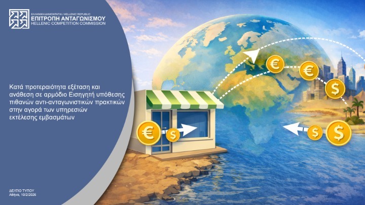 Σε προχωρημένο στάδιο εισέρχεται η έρευνα της Επιτροπής Ανταγωνισμού σχετικά με πρακτικές επιχειρήσεων που δραστηριοποιούνται στην αγορά των υπηρεσιών εκτέλεσης εμβασμάτων, έπειτα από καταγγελία και παράλληλη αυτεπάγγελτη διερεύνηση της Γενικής Διεύθυνσης Ανταγωνισμού.