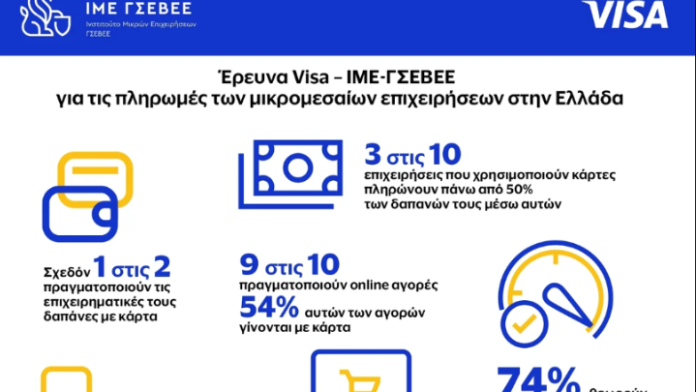 Τα παραπάνω ευρήματα προκύπτουν από την έρευνα του ΙΜΕ ΓΣΕΒΕΕ για λογαριασμό της Visa, η οποία αποτυπώνει για πρώτη φορά σε βάθος τις πρακτικές επιχειρηματικών πληρωμών (B2B) των μικρομεσαίων επιχειρήσεων στην Ελλάδα και αναδεικνύει τον αυξανόμενο ρόλο των ψηφιακών πληρωμών στη σύγχρονη επιχειρηματική καθημερινότητα.